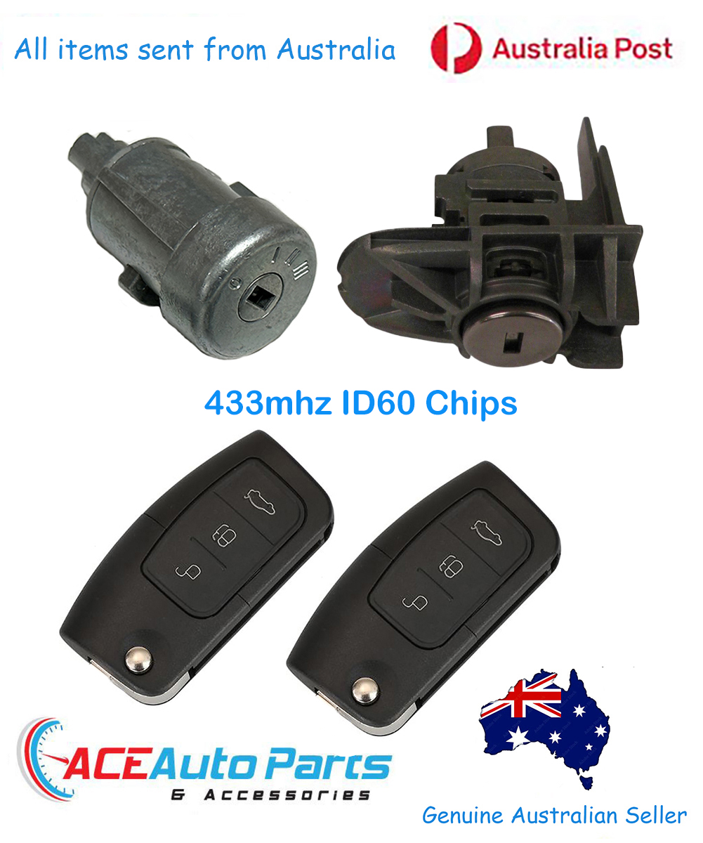 New aftermarket Ignition Barrel and Right Door Lock Set keyed alike with 2 flip keys as pictured.
